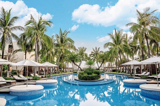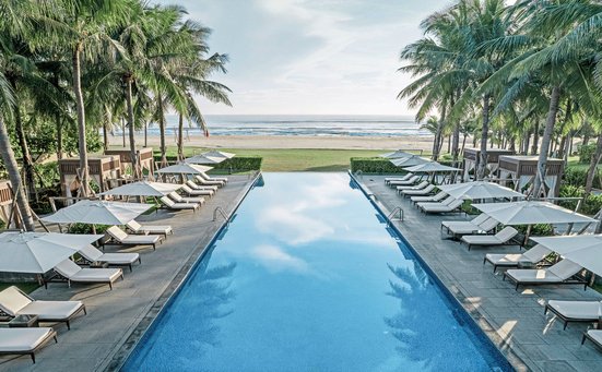 Tradition locale interprétée de manière moderne : telle était la ligne directrice du design de ce luxueux hôtel de plage. Profitez de votre pause dans les cabanes confortables avec vue sur l’océan ou à l’ombre d’une bambou.