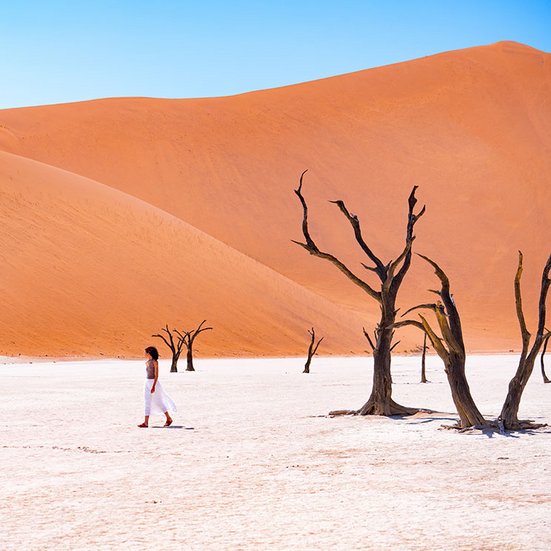La Namibie séduit par ses horizons infinis et ses paysages spectaculaires. Entre l'Atlantique sauvage, le plus ancien désert du monde et de vastes savanes, c'est l'un des cadres naturels les plus fascinants d'Afrique qui vous attend. Avec seulement environ 3 millions d'habitants, le pays compte parmi les régions les moins peuplées de la planète : ici, l'immensité et le silence font de ce voyage une expérience inoubliable.