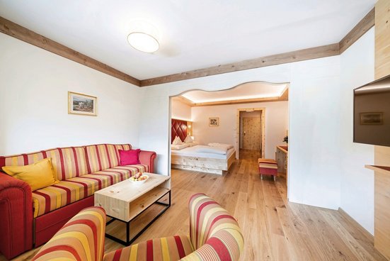 • séjour séparé, chambre à coucher séparée, lit double, canapé-lit, douche ou baignoire, WC séparé, peignoir, chaussures de bain, sèche-cheveux, minibar payant, coffre-fort, TV, balcon
