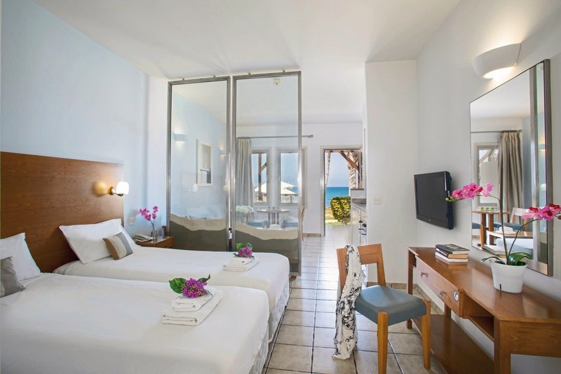 - 41-45 m², suite, vue sur la mer (latéral), 1 chambre à coucher séparée, salon/salle à manger combinés, 1 lits jumeaux, 2 canapé-lits, baignoire, WC, sèche-cheveux, climatisation, env. 1.5.-31.10., chauffage, env. 1.4.-30.4., coffre-fort, TV, coin cuisine, machine à café, café/thé, réfrigérateur, balcon ou terrasse (meublé)