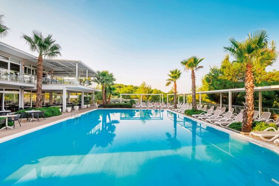 - all inclusive : petit-déjeuner (buffet), déjeuner (buffet), dîner (buffet), boissons comprises avec les repas (soft drinks, bière, vin maison, eau), boissons gratuites (soft drinks, bière, boissons locales, vin maison, spiritueux locaux, eau, 10-23 h), (10h00-24h00 en juillet et août), snacks (15:30-17 h), glace (12-18 h), (6 fois par semaine des glaces)