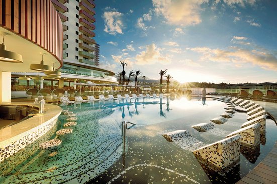 - all inclusive : petit-déjeuner (buffet), petit-déjeuner pour les lève-tard jusqu’à 10:30 h, déjeuner (à la carte), dîner (buffet), dîner au restaurant à la carte (dans des restaurants sélectionnés), réduction au restaurant à la carte, boissons gratuites (10-0 h), snacks (11-19 h), glace (10-18 h), minibar (remplissage sur base quotidienne, soft drinks, eau), dîner de la Saint-Sylvestre