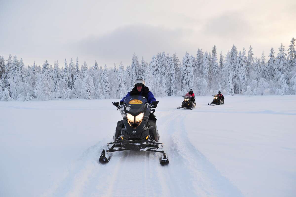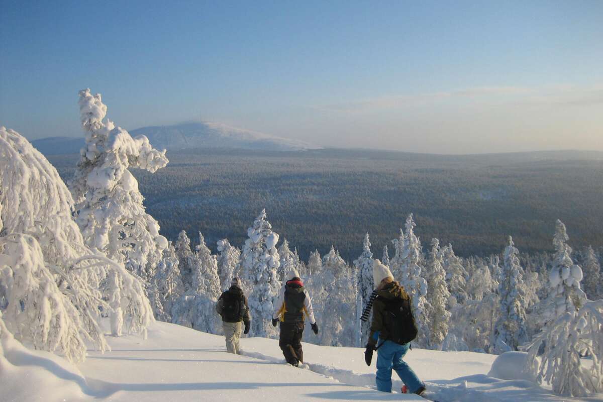 Plongez dans le monde magnifique de l’hiver en Laponie. Pendant tout votre séjour, vous disposez gratuitement d'une paire de raquettes à neige pour aller découvrir la région. Celui qui veut aller plus haut peut faire un safari en motoneige jusqu’au sommet de la montagne la plus haute de la région – Ylläs Tunturi – qui s’élève à 718 m. Beaucoup d’autres activités vous sont proposées, comme un tour en traîneau à chiens ou une visite d’une ferme à rennes.