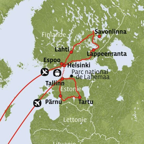 Vol vers la capitale estonienne et prise en charge de la voiture de location. Trajet jusqu'à votre hôtel situé au centre, où vous passez la nuit.