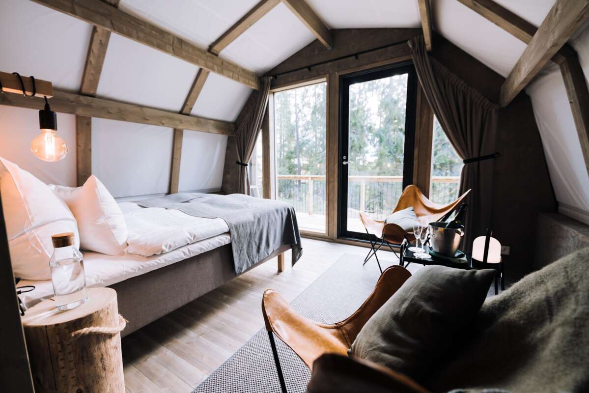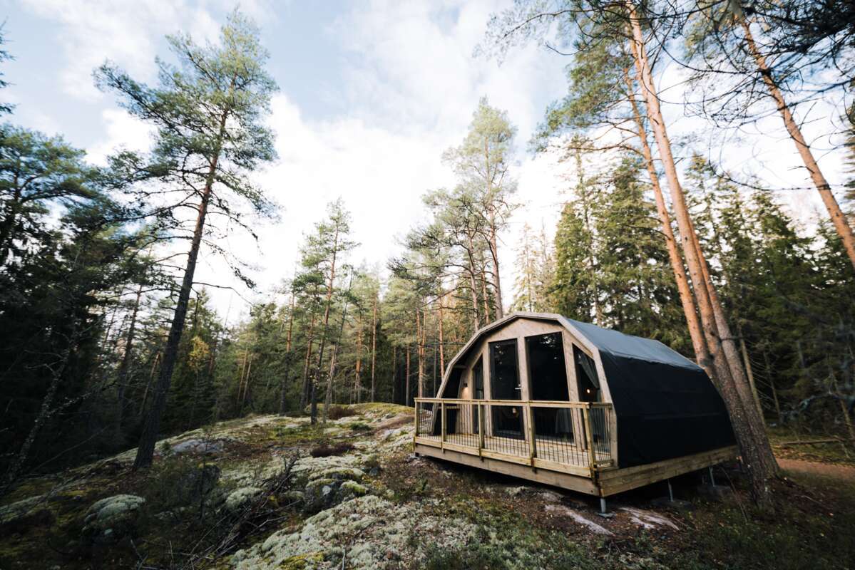 Le voyage repart en direction du sud. Près d'Espoo se trouve le parc national de Nuuksio, votre destination du jour. Votre hébergement pour les deux prochaines nuits est le Haltia Lake Lodge. Notre conseil : dans le Glamping Lodge, vous passez la nuit avec le sentiment d'être un campeur tout en étant confortablement installé (en supplément, plus d'informations ci-dessous). Nuuksio est un véritable trésor de la nature. En raison des dénivelés importants, on y trouve également des itinéraires exigeants.