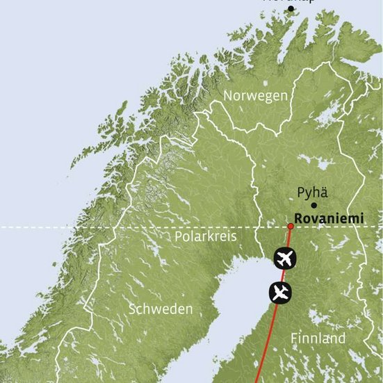 Aujourd’hui, c’est le jour des adieux. Trajet jusqu’à l’aéroport de Kittilä ou Rovaniemi, restitution de la voiture de location et vol de retour en Suisse.