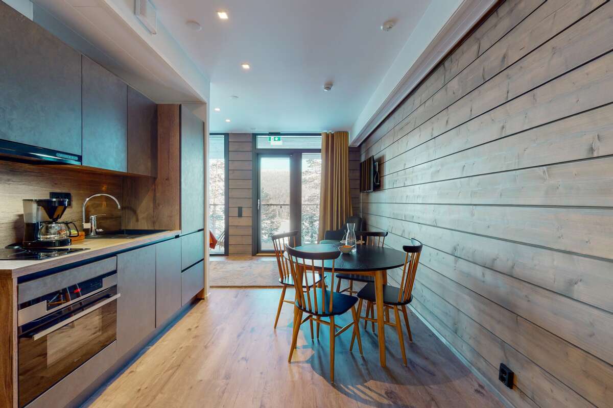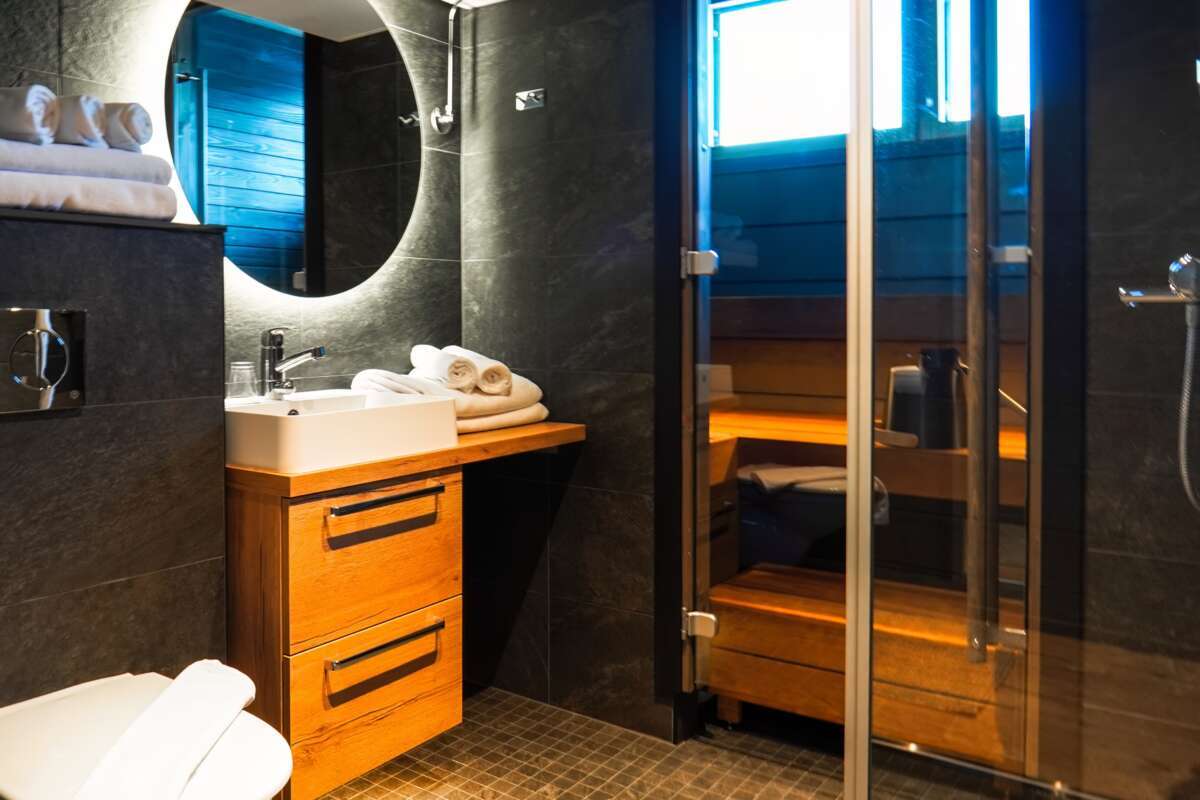 Que ce soit par vos propres moyens ou par le biais d’activités guidées, le paysage autour de Pyhä vous enchantera à coup sûr. De nombreuses possibilités s’offrent à vous : que diriez-vous par exemple d’un tour en traîneau à chiens ? Il existe un grand choix d’activités hivernales — n’hésitez pas à nous poser des questions, nous vous renseignerons volontiers. Après une journée bien remplie dans la nature, vous pourrez vous détendre dans le sauna de votre suite. Terminez la journée par un délicieux repas au restaurant.