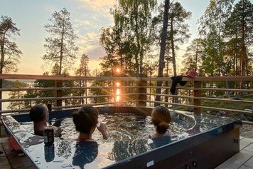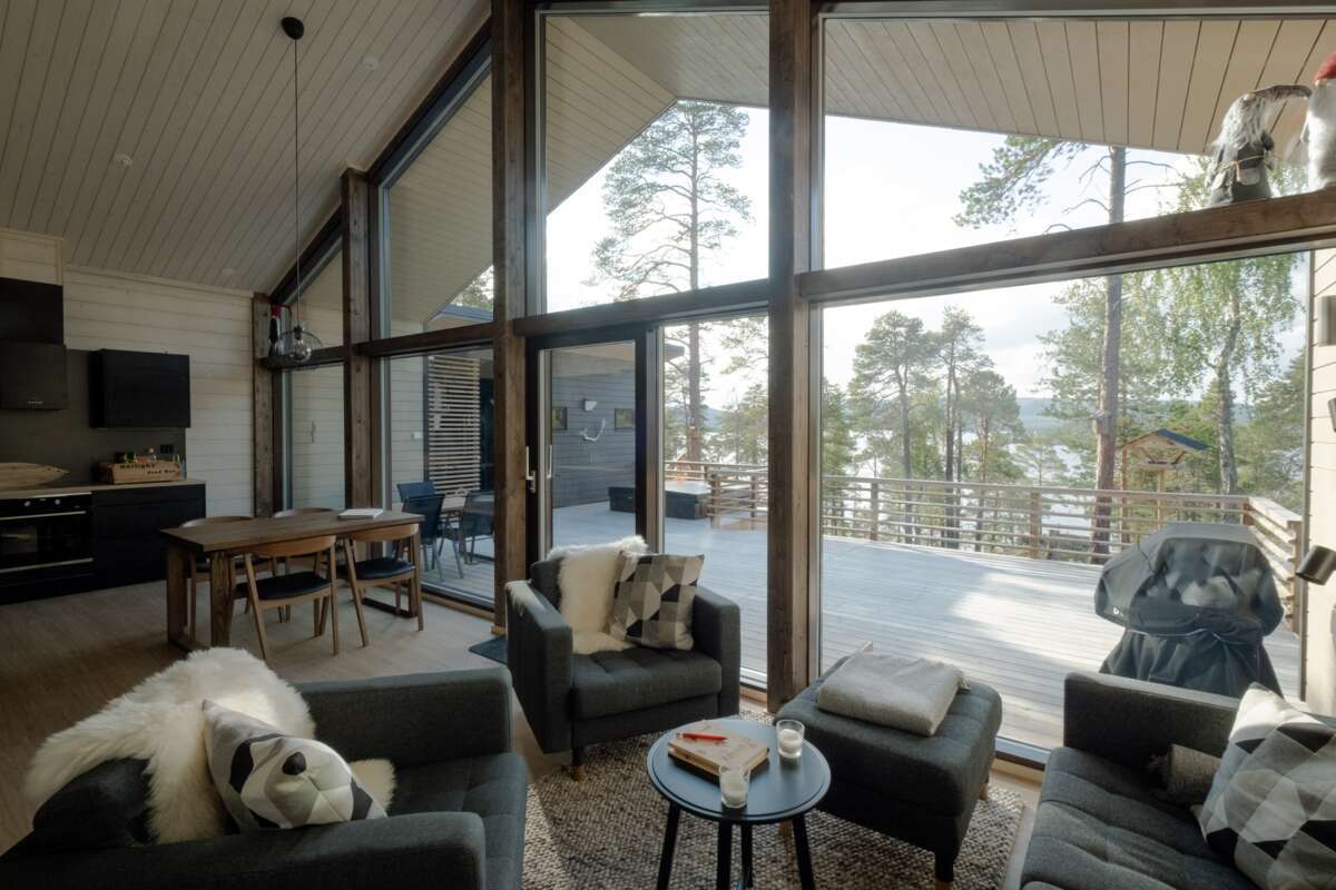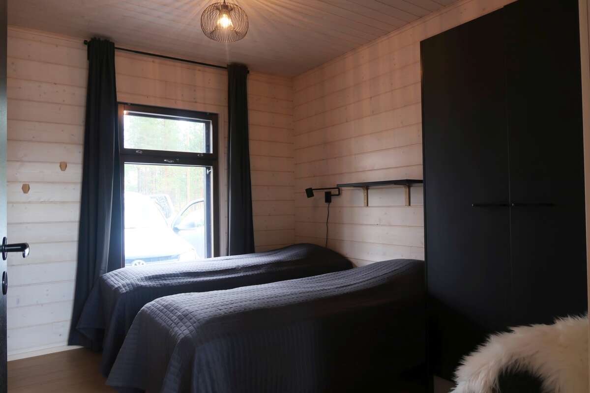 L'une des maisons de vacances disposent de deux chambres à coucher.Les maisons jumelées dispose chacune d'une chambre à coucher et d'une mezzanine avec deux lits supplémentaires. Ces maisons de vacances se distinguent par leur grand espace de vie ouvert sur une spectaculaire baie vitrée avec vue sur le lac. La terasse spacieuse ainsi que le sauna intérieur et extérieur avec hot pot complètent votre expérience en maison au cœur de la Laponie.