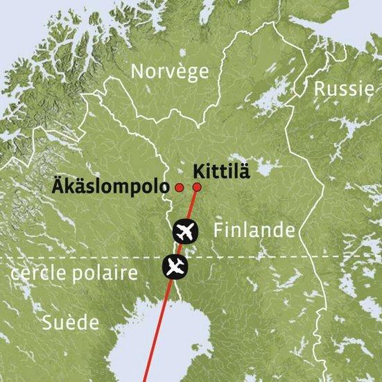 Vol pour Kittilä et transfert organisé en bus jusqu’à votre maison à Äkäslompolo.