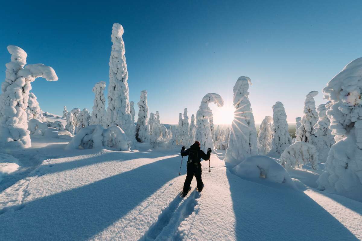 Plongez dans le monde magnifique de l’hiver en Laponie. Pendant tout votre séjour, vous disposez gratuitement d'une paire de raquettes à neige pour aller découvrir la région. Celui qui veut aller plus haut peut faire un safari en motoneige jusqu’au sommet de la montagne la plus haute de la région – Ylläs Tunturi – qui s’élève à 718 m. Beaucoup d’autres activités vous sont proposées, comme un tour en traîneau à chiens ou une visite d’une ferme à rennes.