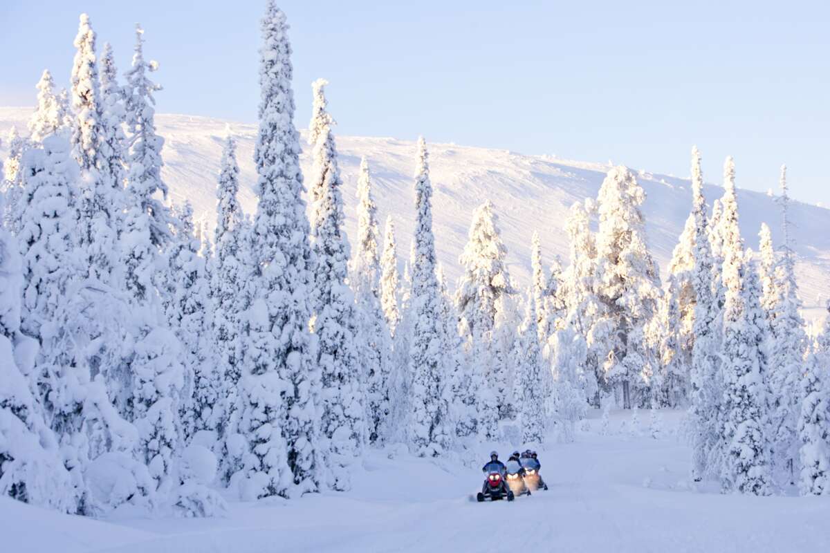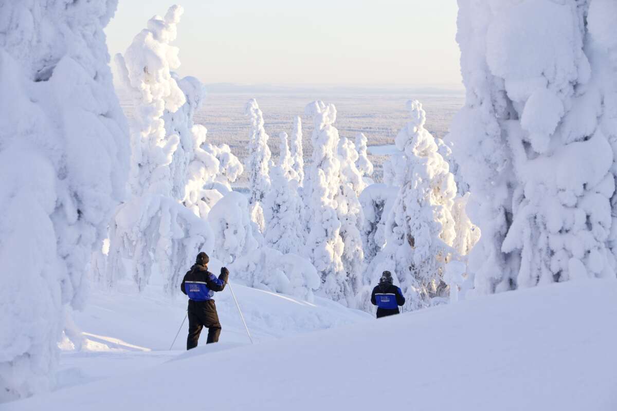 Le paysage hivernal au pied de la montagne de Luosto et au milieu du parc national de Pyhä-Luosto vous invite à l'explorer activement. Que ce soit en raquettes à neige, pendant un tour en traîneau à chiens, en motoneige ou sur les skis de fond sur les kilomètres de pistes.