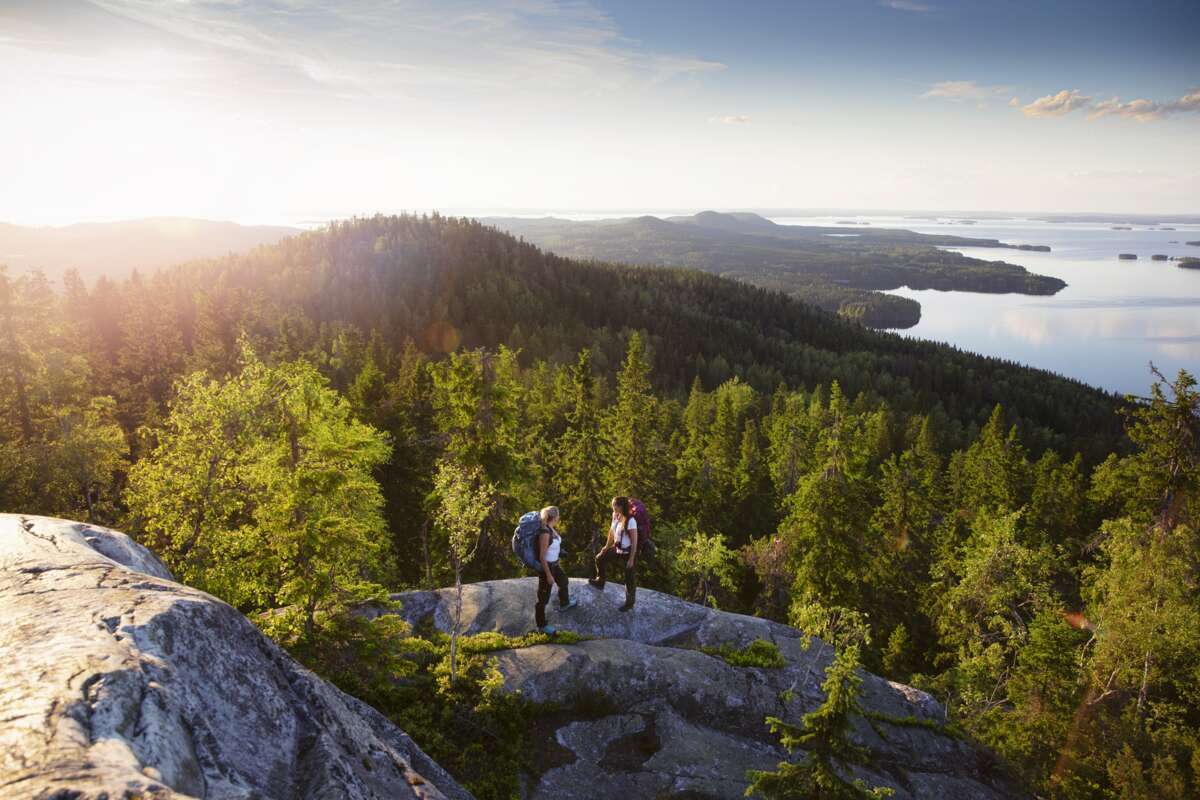 L'aventure à l'état pur! Des vacances en maison dans la région des lacs finlandais c'est être en harmonie avec la nature. Par exemple une randonnée à pied lors de notre tour guidé dans le parc national de Koli (tous les mardis en haute saison). Les chemins pédestres sont bien balisés et conduisent à travers de magnifiques forêts toujours en bordure d'un lac. Prêt pour une petite baignade?