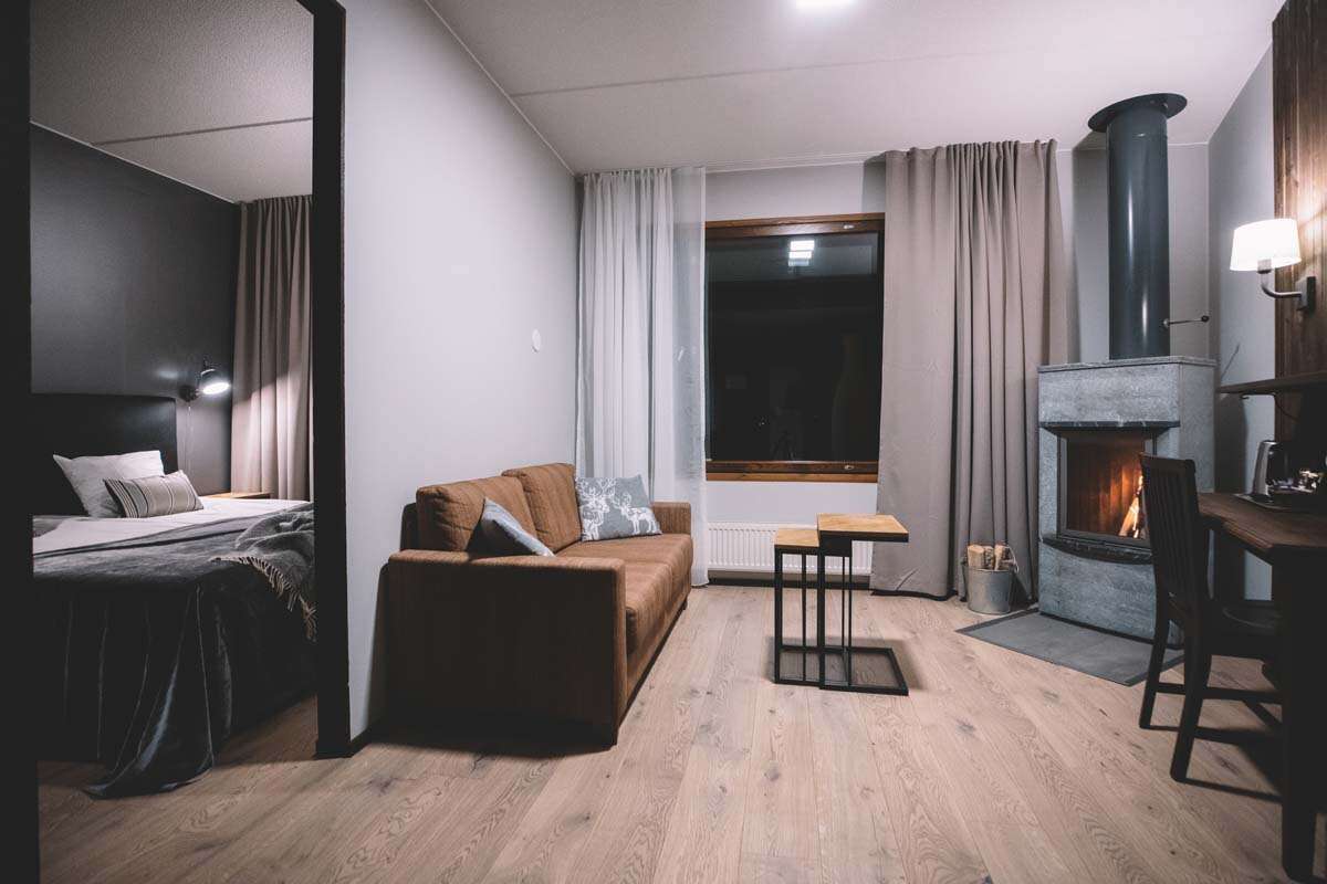 Rien n'est plus relaxant que de terminer sa journée riche en découvertes et en émotions dans le sauna de sa chambre. Les clients qui ont choisi une chambre avec un poêle suédois peuvent ensuite se reposer en admirant le feu. Pour terminer en beauté une journée déjà presque parfaite, il ne reste plus qu'à souhaiter que les aurores boréales se manifestent. Vous pourrez même les observer depuis votre chambre! Croyez-nous, vous n'êtes pas prêts d'oublier ces moments passés en Laponie.