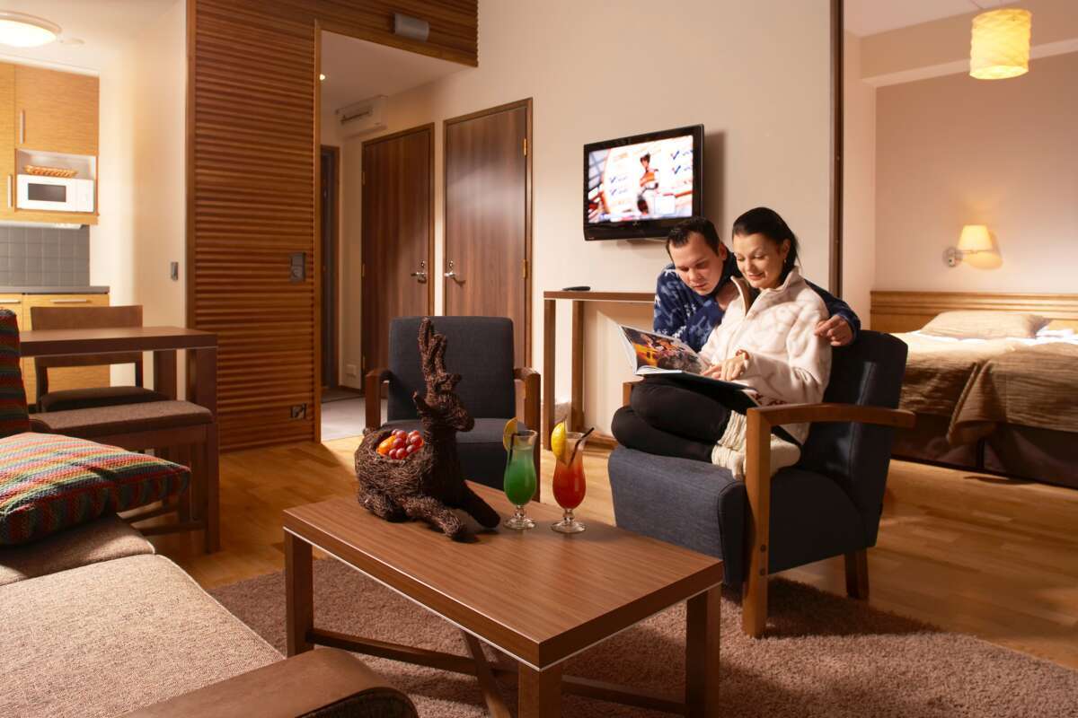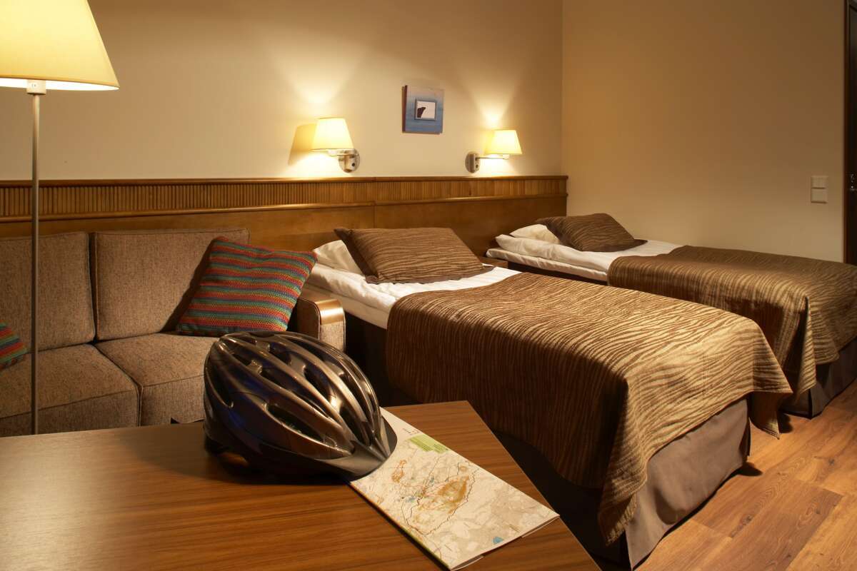 Les Fell Suites (Tuntuti) se prêtent particulièrement bien aux familles avec enfants. Elles se composent d'une chambre avec deux lits et d'un canapé-lit dans le salon, d'une petite cuisine ainsi qu'un sauna. Profitez du service d'un hôtel tout en ayant une grande chambre et un sauna privé.