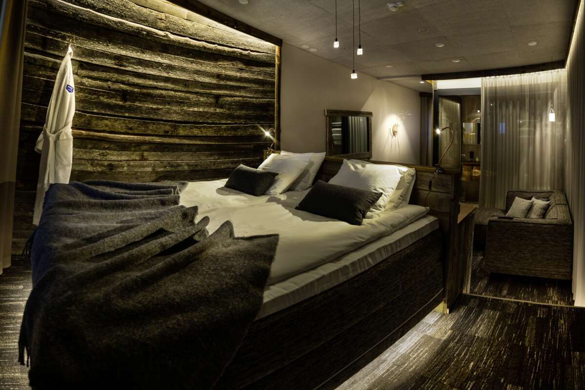 Les chambres Star Superior de 35 m² sont spacieuses et très confortables. Le design naturel et nordique a été mis en œuvre jusque dans les moindres détails. Ici aussi, vous avez une vue imprenable sur le paysage féerique finlandais. Deux lits séparés ou un lit double, une salle de bain design avec douche et WC et un coin canapé supplémentaire assurent le confort.