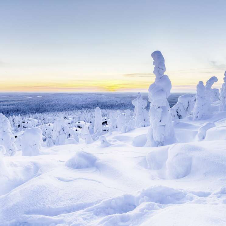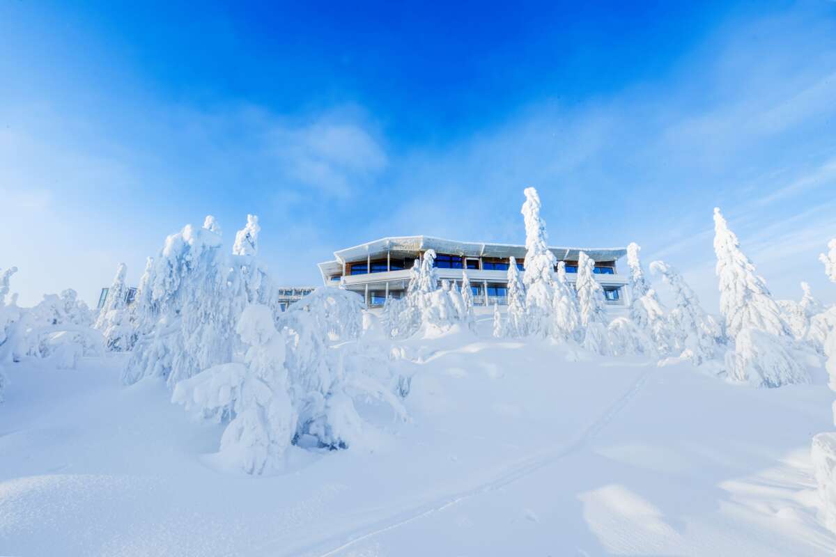 La région de Syöte fait partie d'une des régions les plus enneigées de Finlande et offre, malgré sa situation plus au sud, des conditions idéales pour les activités hivernales. Syöte est une destination unique, en particulier pour les arbres enneigés qui ressemble à des choux fleurs au milieu du paysage mais aussi de par sa situation. Depuis l'hôtel, situé sur le sommet du Tunturi Iso-Syöte à 400 m d'altitude, vous avez une vue époustouflante sur la région et le parc national.
