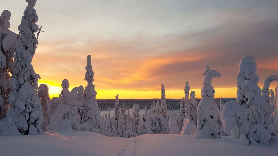 Vol direct pour Rovaniemi ou Kittilä et prise en charge de la voiture de location. Vous vous habituez vite à la conduite sur la neige grâce aux pneus cloutés. Après environ deux heures de trajet (resp. env. 3h15), vous atteignez Salla.