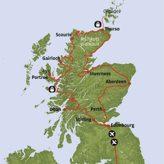 Dans la matinée, vous visitez le Palace de Scone, où les rois d'Écosse furent couronnés. Via Glenshee, vous rejoignez la jolie vallée de la Dee avec Braemar et le château de Balmoral. Nous vous conseillons un détour par le château de Dunnottar. Nuitée dans la région d’Aberdeen/Ballater.
