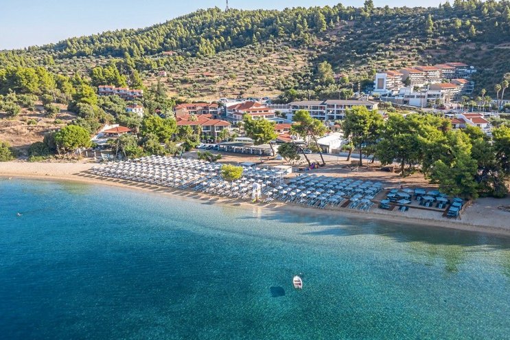 Agios Ioannis Beach Kastri, Nikiti : longue et merveilleuse plage de sable fin dans un cadre verdoyant.