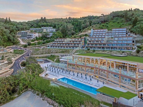 Un design exquis, une architecture élégante ! Les bâtiments s'étendent en gradins vers la mer, entourés d'une magnifique végétation verte. Des restaurants exquis servent une cuisine gastronomique aux saveurs de la terre et de la mer.