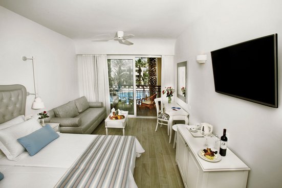 - 21-25 m², chambre double, vue sur la piscine, coin salon, lit simple, canapé-lit, 1 salle de bain, douche ou baignoire, WC, carrelage, coffre-fort (payant), 1 TV (TV par satellite, écran plat), réfrigérateur, balcon ou terrasse, changement de literie (3 x par semaine), changement de serviette (3 x par semaine)