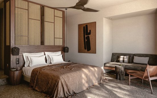 - 36-40 m², suite, bâtiment principal, vue sur la piscine, séjour/chambre à coucher optiquement séparés, 1 salle de bains, douche, douche à effet de pluie, sèche-cheveux, climatisation, coffre-fort, 1 TV (TV par satellite, écran plat), balcon ou terrasse