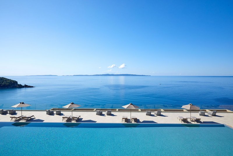 - 31-35 m², chambre double, Deluxe, vue sur la mer, salon/chambre à coucher combinés, 1 canapé-lit, douche, sèche-cheveux, climatisation, minibar payant, coffre-fort, TV (TV par satellite, écran plat), Wi-Fi, machine à espresso, café/thé, terrasse (meublé), piscine privée, articles de bain de haute qualité