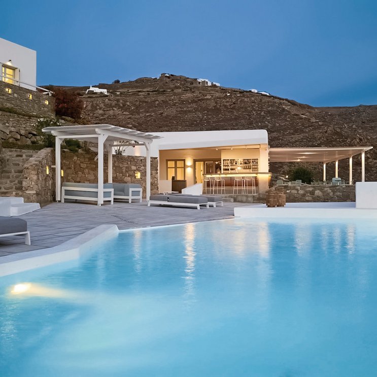 Perché sur une colline surplombant la baie d’Houlakia, avec toute l’intimité que procure un tel emplacement, cet hôtel design exclusif offre une vue imprenable sur les îles de Tinos et Syros.
