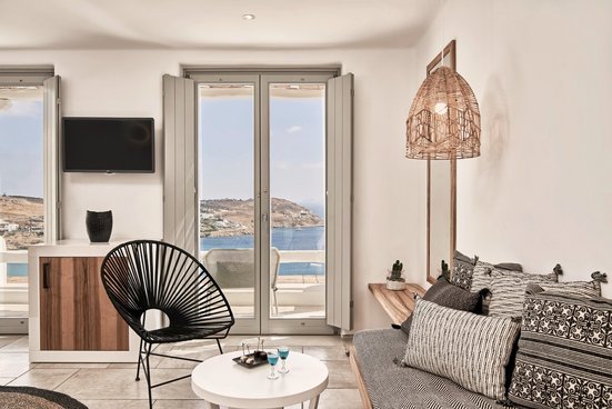 - Junior Suite, vue sur la mer, douche, sèche-cheveux, climatisation, minibar payant, coffre-fort, TV (TV par satellite), machine à espresso, balcon ou terrasse