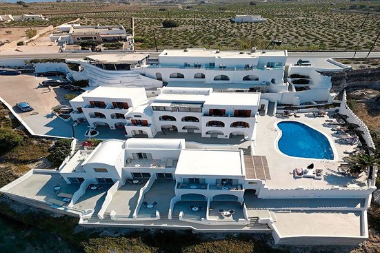 Petites mais raffinées ! 12 suites avec piscines privées ou jacuzzis en plein air vous dévoilent le ciel de la terre. Admirez le panorama sur l’île et la mer depuis le romantique village de montagne de Pyrgos – un spectacle éblouissant !