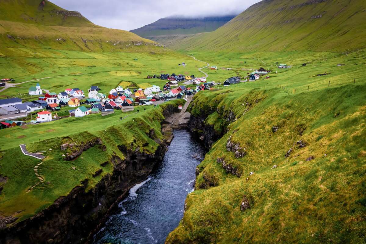 Nous prenons le bus et le guide à 12 h 30 à l’hôtel. Nous longeons le fjord et traversons la vallée jusqu’au village de Saksun. Nous faisons une promenade dans la région et visitons le musée Dúvugarðar. De Saksun, nous continuons vers un autre village magnifique, le village de Tjørnuvík avec sa plage de sable. Nous faisons une promenade dans le village et profitons de la nature. De Tjørnuvik, nous nous dirigeons vers le village le plus au nord de l’île d’Eysturoy, nous faisons un arrêt photo à la cascade de Fossá avant de traverser le pont sur l’océan Atlantique. Nous prenons un café et un gâteau en route. En route, un cadre plus beau et la nature nous attendent et nous passons le village og Eiði et aussi la plus haute montagne des îles Féroé, Slættaratindur, 882 mètres, et nous voyons également les impressionnantes formations rocheuses du Géant et de la Sorcière dans l’océan. A Gjógv, nous faisons une promenade dans le village et visiterons le port naturel ainsi que le belvédère des îles du Nord. A Gjógv, nous avons une soirée culturelle à Gjáargarður, dégustant de la nourriture locale et ayant l’occasion de participer à la danse locale des îles Féroé. Après le dîner à Gjógv, nous passons par le village de Funning où l’histoire raconte que le premier Viking est arrivé à terre et conduit le long du fjord jusqu’au village Strendur et prend le tunnel sous-marin pour retourner à Tórshavn.