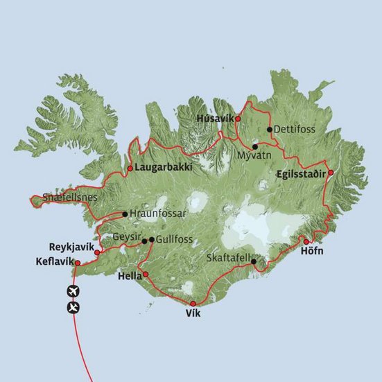 Le matin, rendez-vous dans la vallée de Reykholt aux fameuses chutes de Hraunfossar et aux sources chaudes de Deildartunguhver. Continuation pour Reykjavík. Flânez dans la capitale de l'Islande, faites du shopping sur la Laugavegur ou arrêtez-vous dans un des charmants petits cafés. En soirée, trajet jusqu'à Keflavík et nuitée à proximité de l'aéroport.