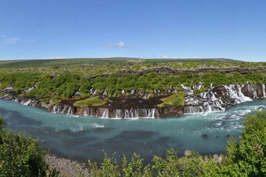 Laissez-vous émerveiller par les insolites chutes de Hraunfossar. Plus d'une centaine de petites chutes d'eau ruissellent sur un champ de lave. Continuation vers le Nord. En chemin, vous longez le cratère de Grábrók qui offre un magnifique panorama sur les alentours. Une nuitée dans la région de Laugarbakki.