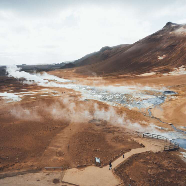 Découvrez un paradis naturel aux étranges formations de lave, idéal pour les randonnées. Vous visitez la zone de solfatares la plus connue d'Islande avec ses marmites de boue bouillonnante et ses sources sulfureuses fumantes. En fin de journée, baignez-vous dans le Earth Lagoon de Mývatn. Ou peut-être désirez-vous participer à un safari de baleines dans la petite ville portuaire de Húsavík?