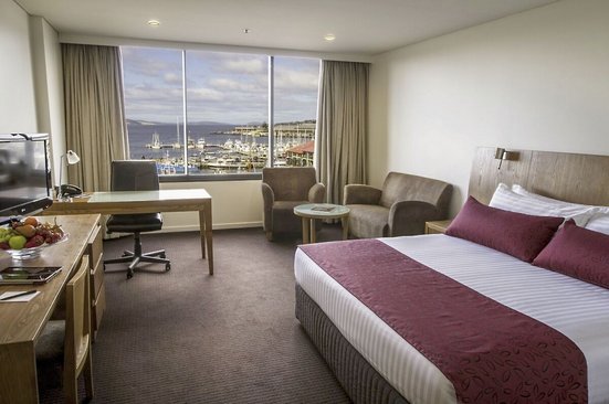 Les meilleures perspectives pour une expérience de vacances inoubliable à Hobart, la capitale de la Tasmanie ! Choisissez entre une chambre avec vue sur le Mont Wellington ou avec une vue spectaculaire sur le port et sur l'eau. Inoubliable !