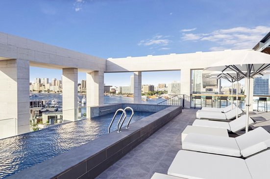 - 1 piscine : piscine à débordement, ouverte toute l’année, sur la terrasse sur le toit, eau douce, parasols, transats
