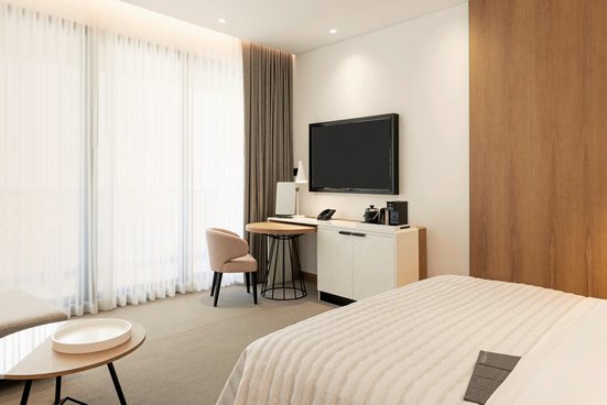 - 36-40 m², chambre double, annexe, rénové, adapté aux personnes à mobilité réduite (réservable sur demande), coin salon, bureau, baignoire, WC, peignoir, chaussures de bain, sèche-cheveux, miroir cosmétique, moquette, climatisation, minibar payant, coffre-fort, planche à repasser, fer à repasser, TV, Wi-Fi, bouilloire, café/thé, balcon, espace de check-in et check-out séparé, accès au Club-Lounge, petit-déjeuner au club lounge, en soirée, boissons alcoolisées au club lounge, hors-d'œuvre l'après midi, thé/café et pâtisseries l'après-midi