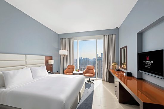 - 36-40 m², chambre double, vue sur la ville, bureau, lits double (1 lit double ou 2 lits simples), 1 salle de bain, baignoire, WC, sèche-cheveux, climatisation, minibar payant, coffre-fort, planche à repasser, fer à repasser, TV, Wi-Fi, bouilloire, café/thé