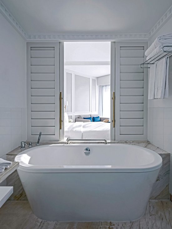 - 81-90 m², suite, vue sur la mer (en partie latéral), 2 chambres à coucher séparées, bureau, 2 salles de bains, douche, baignoire, WC, peignoir, chaussures de bain, sèche-cheveux, miroir cosmétique, moquette, climatisation, minibar payant, coffre-fort, TV, Wi-Fi, machine à café, café/thé, balcon