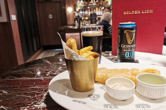 À midi et le soir, le Golden Lion Pub propose une alternative savoureuse avec ses classiques typiques des pubs britanniques. Le choix de bières et de boissons non alcoolisées est également très appréciable.