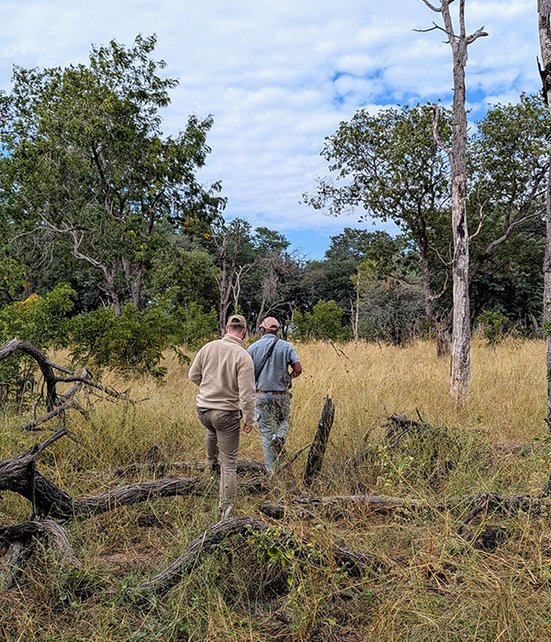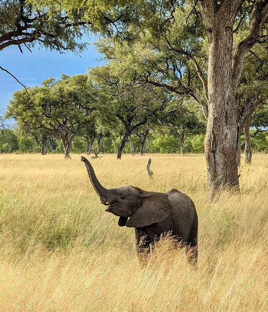 Le lendemain matin, la fatigue s'est rapidement dissipée lors de notre première excursion. Au bout d'une heure, nous avons aperçu le premier éléphant, majestueux et pourtant commun à Hwange, où vivent jusqu'à 40 000 animaux. L'après-midi, d'autres rencontres avec ces paisibles géants ont suivi. Particulièrement impressionnants : les jeunes animaux qui, curieux, ont cherché à s'approcher de nous près d'un point d'eau. Le lendemain, je me suis lancé dans un safari à pied – une expérience impressionnante, qui permet de ressentir de près le pouls de la nature sauvage. La baignade dans la piscine du lodge avec vue sur le point d'eau m'a ensuite offert une détente bien méritée. Le soir, le surnom du parc national de Hwange, « paradis des éléphants », s'est une nouvelle fois confirmé. À l'heure dorée, j'ai pu observer une famille d'éléphants boire et jouer autour d'un point d'eau – tout simplement magique !