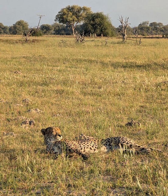 Le lendemain matin, l'excitation était à son comble, car selon notre ranger, nous avions la possibilité d'apercevoir des lions ou des guépards au lever du soleil. Je n'avais jamais été aussi rapidement prêt le matin. Le guide m'a conduit près d'une grande plaine, et il ne restait plus qu'à attendre. Le soleil se levait lentement à l'horizon, mais aucun lion ne s'était encore montré. Quinze minutes supplémentaires se sont écoulées avant que mon guide ne repère un mouvement dans les buissons. Une lionne voulant profiter de la chaleur des premiers rayons du soleil s'était allongée à seulement 50 mètres de nous. Un début de journée parfait ! À peine avions-nous pris congé de la lionne que nous avons aperçu deux guépards chassant un troupeau de gnous. La tension était à son comble, mais les deux félins ont finalement renoncé à leur proie et nous sommes retournés au camp. Je me réjouissais de passer quelques heures tranquilles au camp. À ce moment-là, je ne me doutais pas encore du spectacle qui m'attendait l'après-midi. Peu avant 15 heures, les babouins autour du camp sont devenus très agités. De tels cris d'alarme signifient généralement qu'un prédateur se trouve à proximité. Nous avons donc rapidement attrapé notre équipement et sommes montés dans le véhicule. Alors que nous faisions le tour du camp, ils sont apparus devant nous : non pas un, ni deux, ni trois, mais douze lions – toute une famille – en pleine errance. Les lions ne semblaient toutefois pas d'humeur à chasser, l'alerte donnée par les babouins était donc injustifiée. L'atmosphère détendue qui régnait au sein de la famille de lions nous a offert un spectacle exceptionnel : les plus petits batifolaient tandis que les plus âgés buvaient avec délectation à la mare ou profitaient des derniers rayons de soleil de la journée.