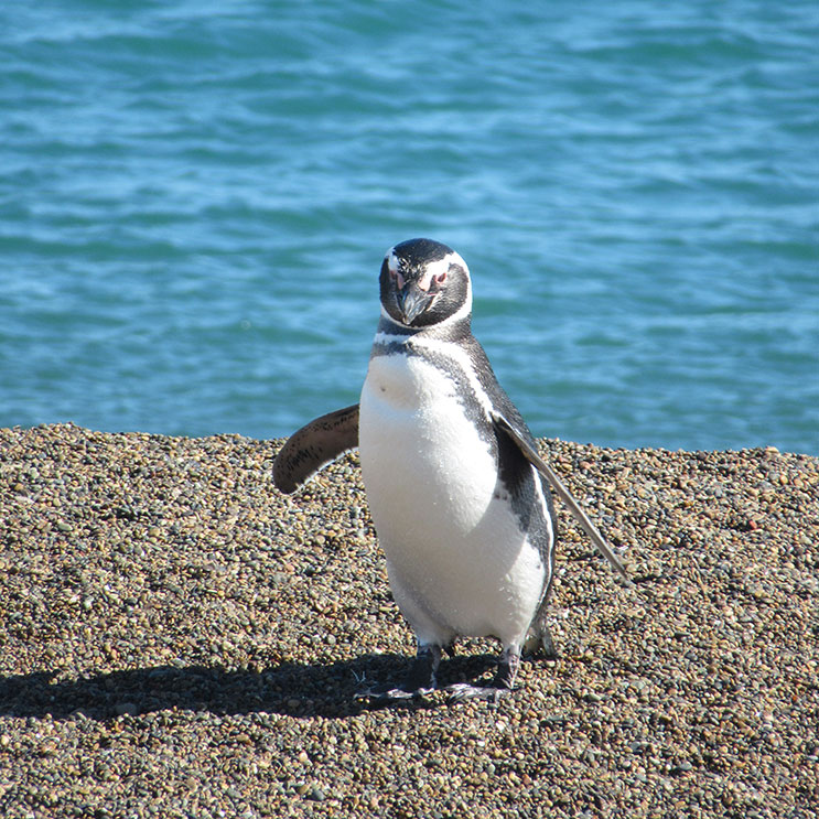 Tôt le matin, nous visitons la colonie de manchots de Magellan de l’Estancia San Lorenzo. La proximité avec les manchots qui se dandinent tranquillement vers la plage est une expérience émouvante.