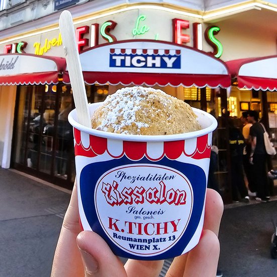 Un lieu culte depuis des générations : le glacier Tichy sur la Reumannplatz. Entre l’ambiance rétro et les tables en marbre, vous trouverez des créations légendaires telles que les célèbres Eismarillenknödel. Une pause gourmande qui est depuis longtemps une tradition pour de nombreuses familles.