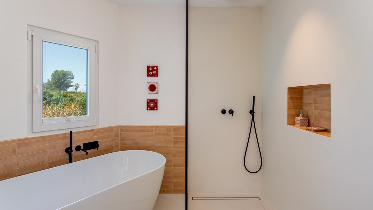 Das Äußere der Villa ist ein Refugium aus mediterranem Grün- und pulsierenden Blüten, ohne direkte Nachbarn, die absolute Privatsphäre garantieren. Deren Herzstück ist ein maßgeschneiderter, nach Süden ausgerichteter Pool mit einem sandfarbenen Keramikstrand, umgeben von Liegestühlen, Sonnenschirmen und schattigen Terrassen; ideal zum Sonnenbaden oder Entspannen in der Brise. Den Gästen stehen ein traditionelles Hammam, ein offizieller Pétanque-Platz, eine Tischtennisplatte und eine ruhige Terrasse mit einem Springbrunnen für ruhige Momente zur Verfügung. Deren weitläufige Dachterrasse bietet einen atemberaubenden Panoramablick auf das Meer und die Klippen, ideal für Yoga, Sonnenbaden oder Aperitifs bei Sonnenuntergang. Jeder Außenbereich ist für Entspannung, Spiel und Wohlbefinden geschaffen.