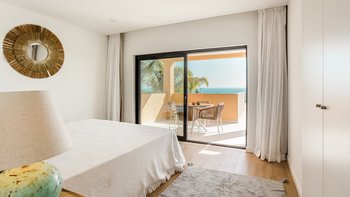 Im Obergeschoss verfügt die Villa über zwei weitere schön eingerichtete Schlafzimmer, jedes wiederum mit eigenem Bad, um Privatsphäre und Komfort für jeden Gast zu gewährleisten. Sie haben direkten Zugang zu einem privaten Balkon, von dem aus Sie mit Panoramablick auf das Meer aufwachen oder einen ruhigen Moment bei Sonnenuntergang genießen können. Denen Einrichtung ist modern und doch einladend, mit einem Schwerpunkt auf natürlichem Licht und beruhigenden Farbtönen, die die Küstenlandschaft widerspiegeln.