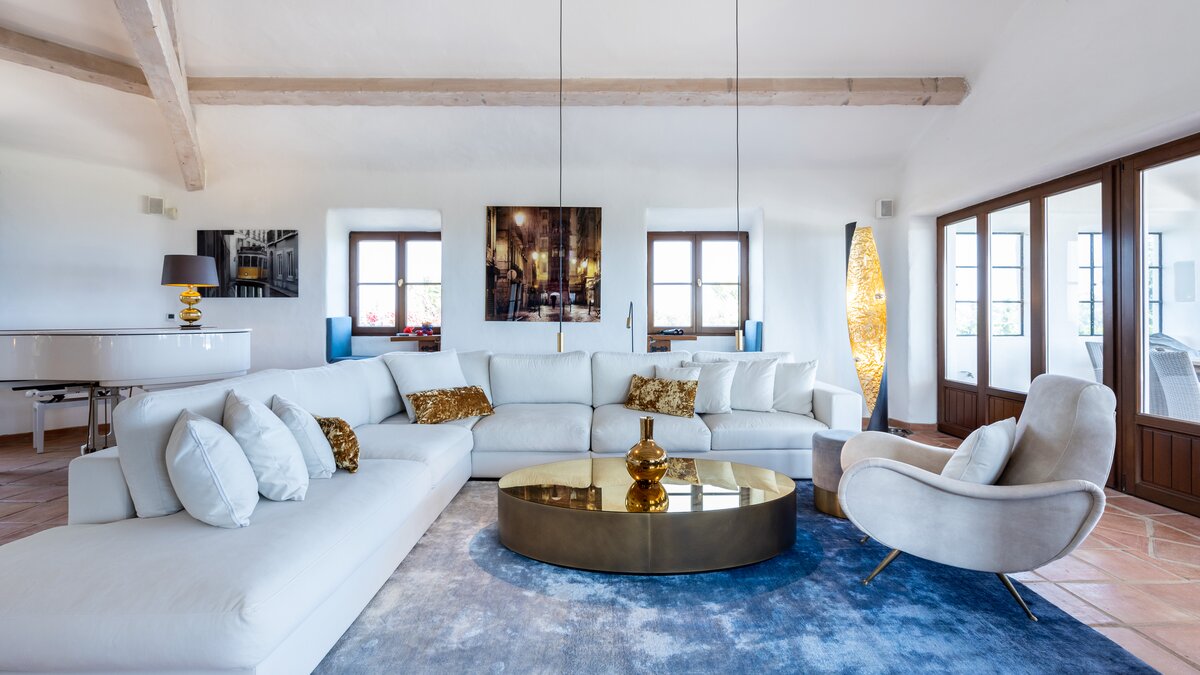 Im Obergeschoss beeindruckt die Villa weiterhin mit einem großzügigen, OFFENER GRUNDRISS Wohnraum, der für gesellige Momente und Familienfeiern konzipiert ist. Deren raumhohe Fenster lassen viel Tageslicht herein und bieten einen Panoramablick auf das Meer, während der angrenzende Essbereich und die stilvolle Lounge eine entspannte und dennoch elegante Atmosphäre schaffen. Ebenfalls auf dieser Etage befinden sich zwei weitere Schlafzimmer mit Doppelbett, beide mit Kingsize-Bett und eigenem Bad ausgestattet. Deren Hauptschlafzimmer verfügt über einen umlaufenden Balkon, der den idealen Ort für morgendliches Yoga oder einen Sundowner mit Aussicht bietet.