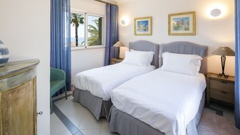 Wenn sich die Gäste der Casa Valentina nähern, werden sie von einer charmanten gepflasterten Auffahrt und tropischen Palmen begrüßt. Vor uns liegt eine traditionelle portugiesische Villa mit herrlich grünen Fensterläden.