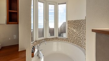 Das Erdgeschoss empfängt die Gäste mit einem luftigen, OFFENER GRUNDRISS Wohn- und Essbereich, wo große Glastüren den Ozean rahmen. Moderne Möbel und neutrale Farbtöne schaffen eine ruhige und anspruchsvolle Atmosphäre, während die voll ausgestattete Küche die Hausmannskost zu einem Vergnügen macht. Dieser Ebene verfügt auch über ein komfortables Schlafzimmer mit direktem Zugang zur Terrasse und ein modernes Duschbad en suite für zusätzlichen Komfort.