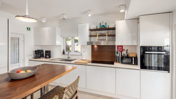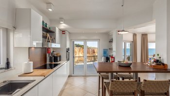 Im Obergeschoss befinden sich drei elegante Schlafzimmer, von denen jedes einen Panoramablick auf den Atlantik bietet. Besonders besonders ist die Master-Suite mit einem privaten Balkon ausgestattet, der sich perfekt für einen ruhigen Morgenkaffee oder den Sonnenuntergang eignet. Jedes Zimmer ist mit weicher Bettwäsche und stilvollem Dekor ausgestattet, während zwei Schlafzimmer mit eigenem Bad ausgestattet sind, das nach höchsten Standards ausgestattet ist.